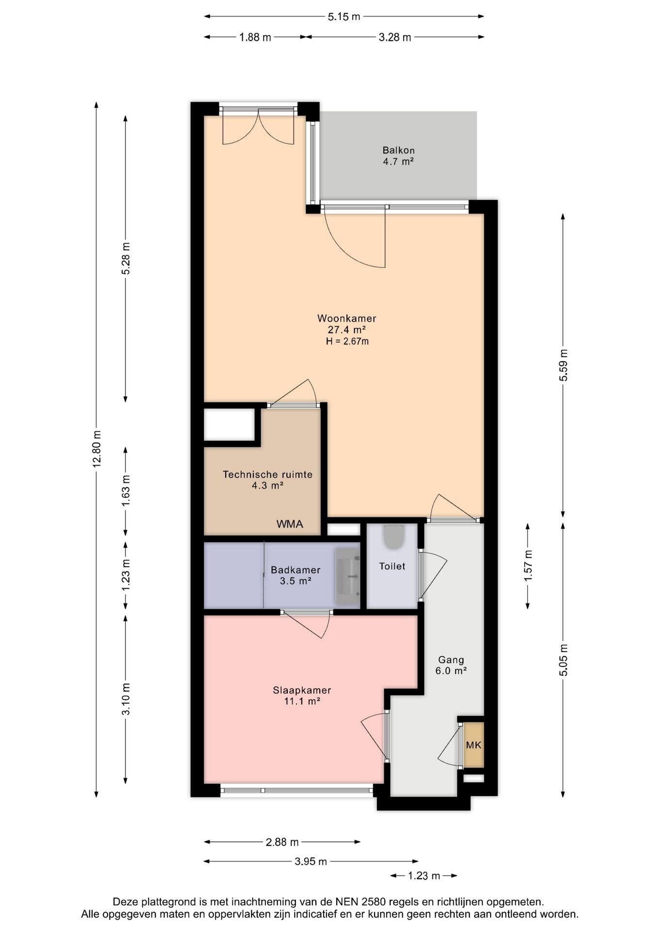 Deze woning is gemeten volgens de Meetinstructie. De Meetinstructie is gebaseerd op de NEN2580. De Meetinstructie is bedoeld om een meer eenduidige manier van meten toe te passen voor het geven van de gebruiks-oppervlakte. De Meetinstructie sluit verschillen in meetuitkomsten niet volledig uit, door bijvoorbeeld interpretatieverschillen, afrondingen of beperkingen bij het uitvoeren van de meting. Hoewel wij de woning met veel zorg en naar eer en geweten hebben opgemeten, kan het zijn dat er verschillen zijn in de afmetingen. De opgegeven maten zijn indicatief, er kunnen kleine verschillen zijn. Afhankelijk van de moeilijkheidsgraad van het te meten specifieke object kunnen deze verschillen groter of kleiner zijn. Indien de exacte maatvoering voor u van belang is, raden wij u aan de maten zelf te (laten) meten. Lees de volledige omschrijving